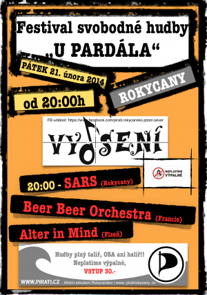 První festival svobodné hudby v Rokycanech! Místní pirátské sdružení organizuje historicky 1. festival svobodné hudby pro širokou veřejnost, aby přiblížilo lidem hudbu a tvorbu umělců, kteří nechtějí být zastupováni organizací OSA. Z toho také vyplývá jednotný název těchto festivalů pořádaných po celé republice - VyOsení. První velké VyOsení v Plzni, resp. v Plzeňském kraji bylo ZDE: Vlčtejn