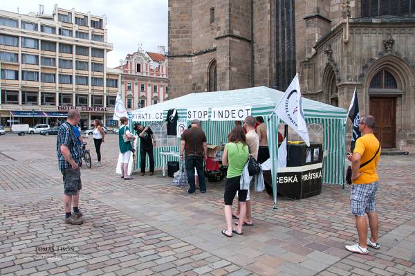 Projekt INDECT má být inteligentní, integrovaný a internacionální. Má získávat informace i z internetových diskuzí, jednoduše řečeno z hlediska autorů projektu je prostě IN! Výzkumný projekt řeší plošné sledování ve městech, sběr dat a jejich centrální zpracování, dozor pomocí robotických systémů a sledování veškeré činnosti na Internetu. V Plzni se dnes odpoledne sešlo několik desítek lidí na happeningu „STOP INDECT“. Akci uspořádali plzeňští Piráti.